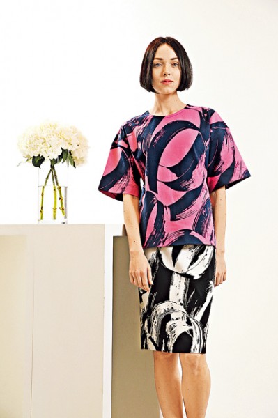 Hulahula 印花圖案短袖上衣 $1,995、Hulahula 印花圖案半截裙 $2,195。