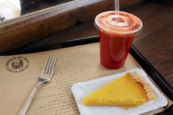 George Whitman 當年的祈願裡提到 Lemon pie, 那點一份檸檬批(5歐元)也是理所當然的吧!值得留意的是餐盤上的紙上列出了30條問題,讓你一邊吃蛋糕,一邊思考人生與哲學。