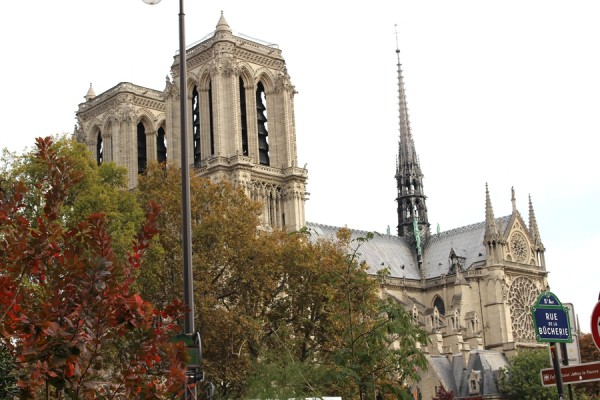 挑了一個窗邊的位置坐下來,看著河對岸的聖母院,巴黎的樹葉都換上紅紅黃黃的秋衣了。這個平日的下午,咖啡館裡來來往往各式各樣的人,一個人來看書寫字的法國人、來聊天的美國女生們、帶著照相機慕名而來的遊客們。