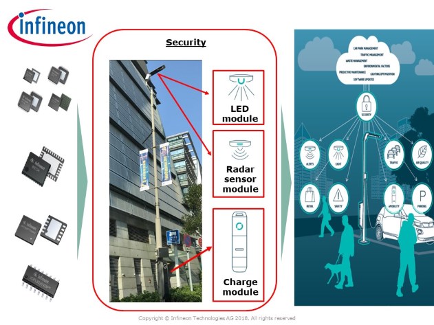 榮獲《2018香港智慧城市大獎》「傑出智能路燈系統」獎項的英飛凌科技香港有限公司研發的多用途智慧路燈系統,實現全天候遙距控制路燈,以及監測和收集城市各項數據,能加快智能城市的管理發展。智慧路燈系統透過內置24GHz雷達傳感器來感知周邊環境狀況,再配合英飛凌領先全球的芯片技術,雷達偵測範圍能達100米,更不受天氣問題影響,能將收集所得的數據即時上傳至雲端平台,快速和安全地傳遞訊息,達至收集實時城市數據之效。